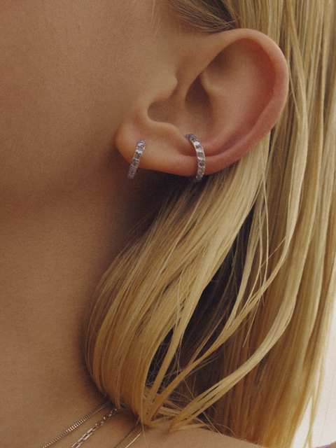 MARIA BLAKC所有的耳骨扣都能微微調整大小且輕盈,配戴舒適感極佳。配戴時,從耳朵上方較薄的耳骨處套入,往下滑動卡住耳窩; 取下時,往上移動到耳骨較薄的地方取出。